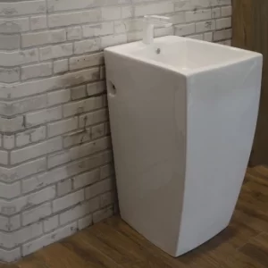 Bacha tipo pedestal cuadrado de loza 47x51x85