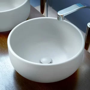 Bacha redonda de loza blanca mate para apoyar