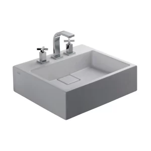 Bacha rectangular de loza blanca de apoyo – 3 agujeros