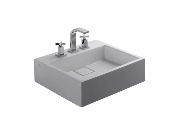 Bacha rectangular de loza blanca de apoyo – 3 agujeros