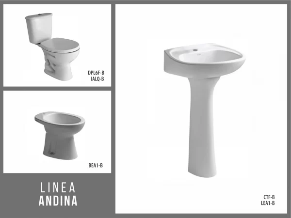 Juego completo de inodor, mochila, bidet, pileta y pedestal. ferrum linea andina