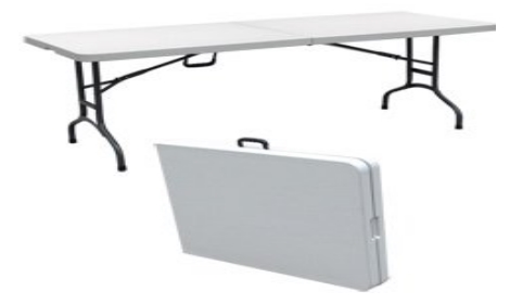 MESA PLEGABLE 181 X 72 X 73 CM RESISTENCIA MAX. 250 KILOS ESTRUCTURA TUBULAR DE ACERO PROTECCIÓN UV Y ANTI MANCHAS PESO 10.2 KG.